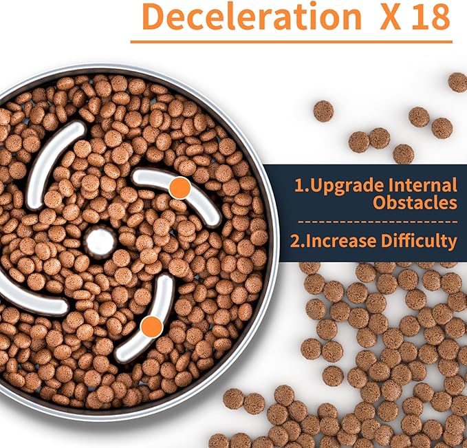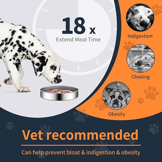 Slow Feeder Dog Bowls with Non-Slip Bottom Stainless Steel Metal Slow Feeing Bowls 3 Cups for Small Medium Dogs and Fast Eaters Slowing Down of Eating