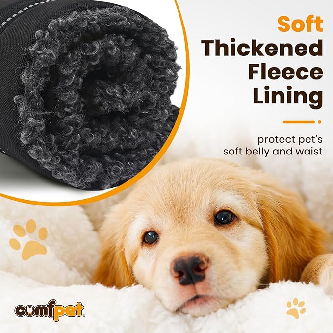 - 【COMFORTABLE AND PORTABLE】This dog sling is designed with a soft padded sheepskin lining that is 3.5cm thick to protect the fragile tummy of frail and elderly dogs while keeping them warm in winter. In addition, the handle with removable padding protects your hands well, and the padded foam on both sides allows you to comfortably and easily lift your dog's back legs without strangling them, making carrying more comfortable.