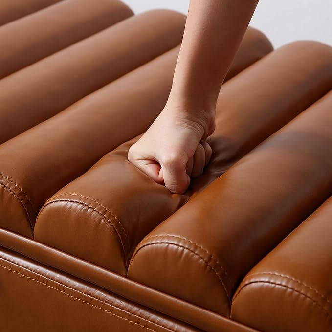 Wavy Ottoman Storage Bench Multi-Functional Narrow Entryway Bench Elegant End of Bed Bench with Storage and Safty Hinge for Living Room Entryway Hallway Bedroom Boutique, Brown