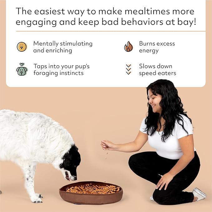 Reggie Stimulating Feeder Mat for Dogs | Relieve Speed Eating, Boredom, Stress | Vet-Approved & Ideal for All Ages, Dog Breeds, and Sizes (Brown Feeder Mat)