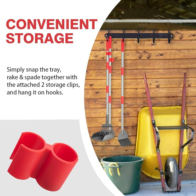 - Easy Assembly and Convenient Storage: The set is designed to be easily assembled. You simply need to push the parts together and lock them into place, without the need for any additional tools. This allows for quick setup and immediate use, making it convenient for dog owners who want to efficiently clean up after their pets. When not in use, you can simply snap the tray, rake & spade together, allowing them to stay securely connected and take up less space.