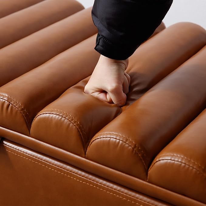 Kmax 45" Storage Bench PU Leather Entryway Bench Upholstered Ottoman Bench with Wavy Top & Safty Hinge for Bedroom Living Room Hallway, Brown