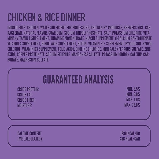 - Premium Protein Duo: Our wet dog food features real chicken as the primary protein source, supporting muscle development and energy levels. Combined with wholesome rice, it creates a balanced and satisfying meal.