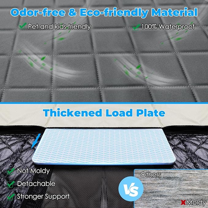 - No Smell Material: The dog car seat cover for back seat without terrible smell is friendly for pets and children. In an enclosed car space, no terrible smell is also important to keep you focused and driving safely, something that others' dog covers on the market ignore. The thickened PP hollow board plate is more durable than others' wood base