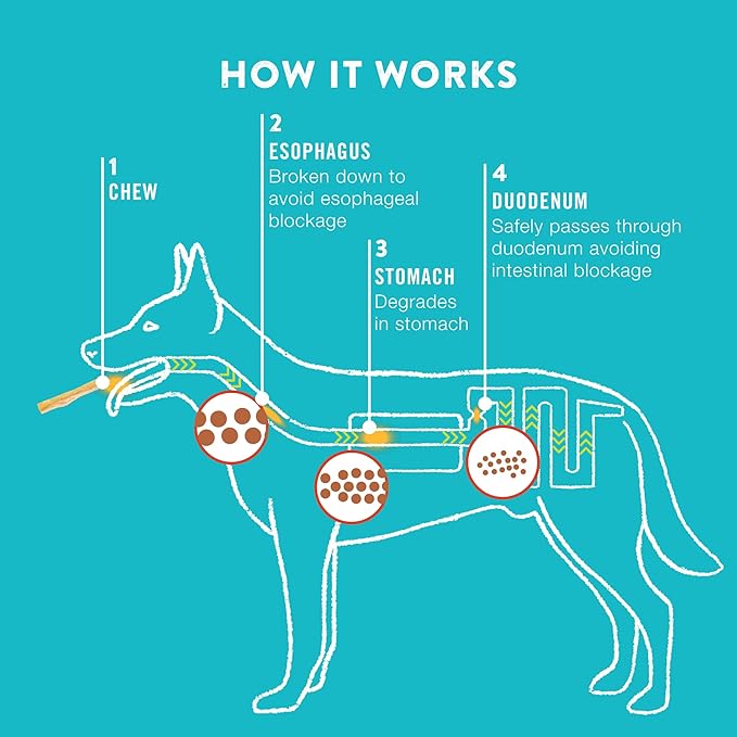 - Dental Health Support: The dense and durable texture helps maintain clean teeth and healthy gums by mechanically reducing plaque and tartar. This not only improves oral health but also keeps your dog's breath fresher.