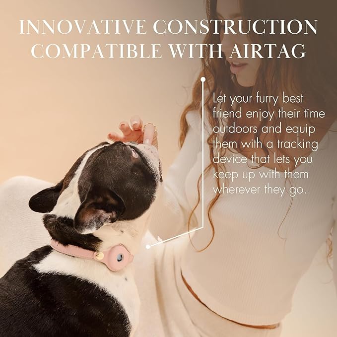 Cupertino Dog Collars, Harnesses & Leashes Made from Vegan Leather with Dog Tracker Device Holder Adjustable Dog Collar (Medium, Pink)