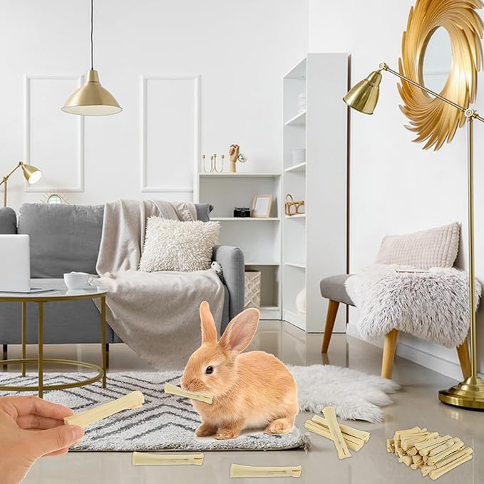 - EXCELLENT MATERIALS - Bamboo sticks for rabbits is made of natural materials. Rich in dietary fiber, xylose, vitamins, digestive fiber and so on. Low calorie, can promote small animal intestinal peristalsis, improve digestion and increase appetite