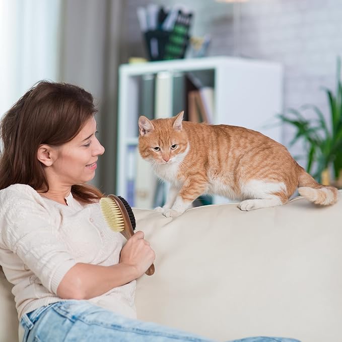 - Durable natural materials: Made with genuine boar hair securely set into a solid wood handle with a convenient leather hanging loop. Suitable for all cat breeds, both short and long-haired, providing a long-lasting, natural grooming solution.