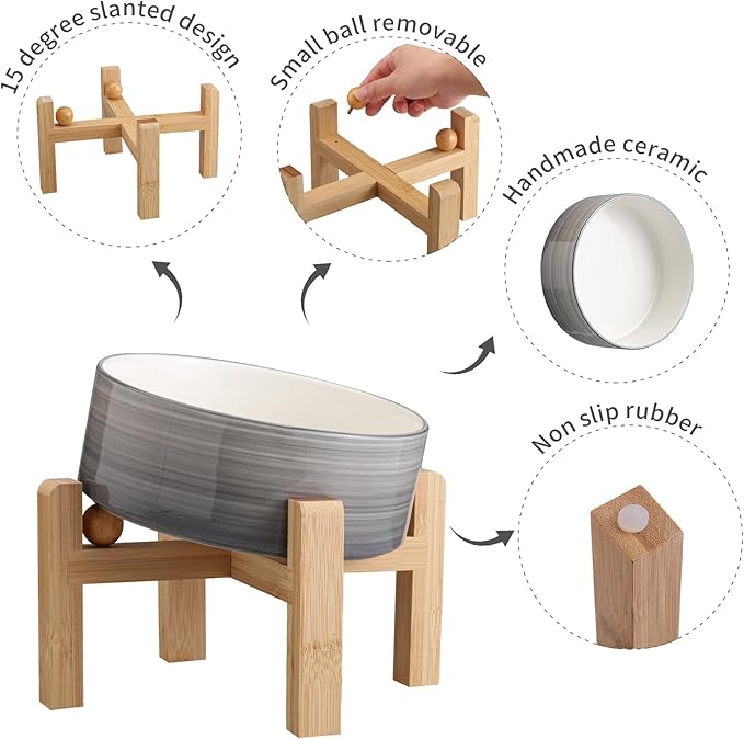 - MODERN DESIGN : cute & Modern Addggo pet bowl with a bamboo wood stand with a non-slip base, suitable for every home style, especially boho home decor.