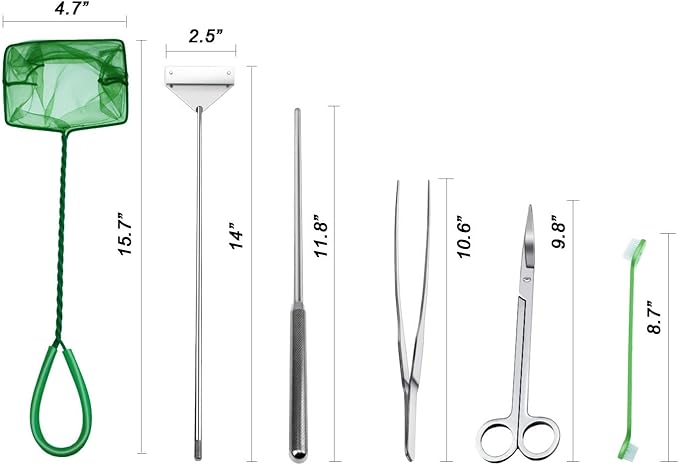 - Complete Cleaning Kit: Our aquarium siphon kit includes essential items like an aquarium vacuum gravel cleaner,aquarium algae scraper,scissors,tweezers and so on, catering to all your aquarium maintenance needs. Perfect aquarium starter kit