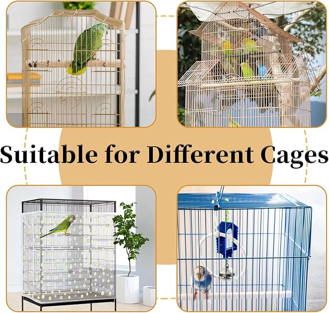 - 【Premium Nylon Material】This bird cage cover is made of premium encrypted nylon mesh, durable, soft and airy fabric, excellent dust resistance, can be used for a long time.