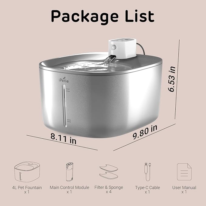 - Stainless Steel Construction: The iPettie Runway Wireless Cat Water Fountain, made of enduring stainless steel, ensures long-lasting performance and easy maintenance.