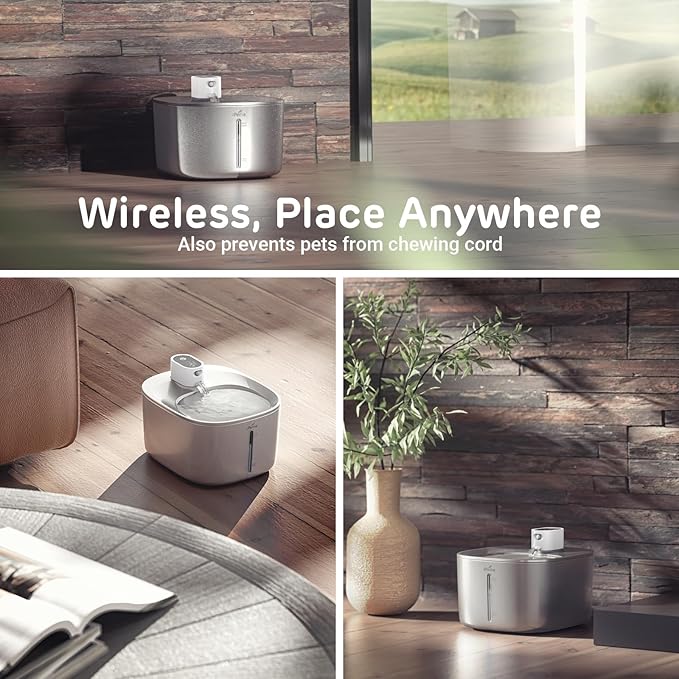 - Cordless and Battery Operated: Enjoy the convenience of a cordless cat water fountain with a wireless pump, providing flexibility in placement without the need for electrical outlets or cumbersome wires.