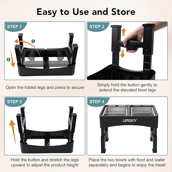 - Easy to Install & Removable: The adjustable raised dog bowls are foldable for storage. Easily assembled in seconds without any tools, easy to store and carry, whether used indoors or taken on a camping trip, and can help you save space whether used indoors or on camping trips