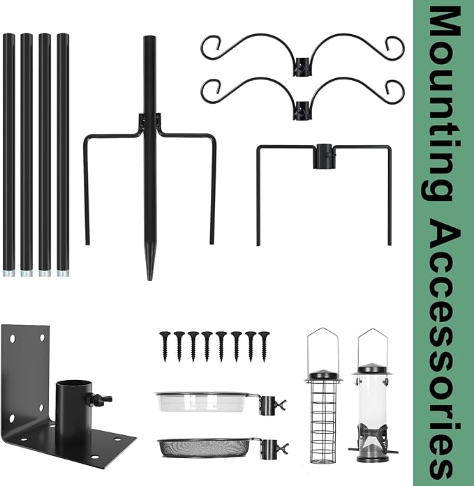 - FUNCTIONAL POLE SET: Our bird feeder stand comes with 2 pair hooks, 2 feeders, bird bath support ring and bird bath, micro mesh feeder tray, and heavy duty house pole
