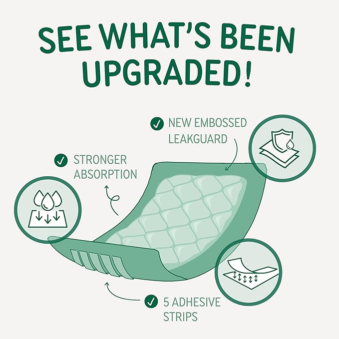 - High Absorbency for Long-Lasting Dryness: The upgraded liner core locks in 15 to 20 percent more liquid than before. Keeps your dog drier for longer, helping prevent irritation and rash.
