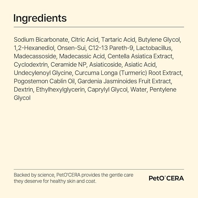 - Alps Hot Spring Water: Carbonated onsen water exfoliates residue from coat and skin, while boosting skin regeneration and immunity.
