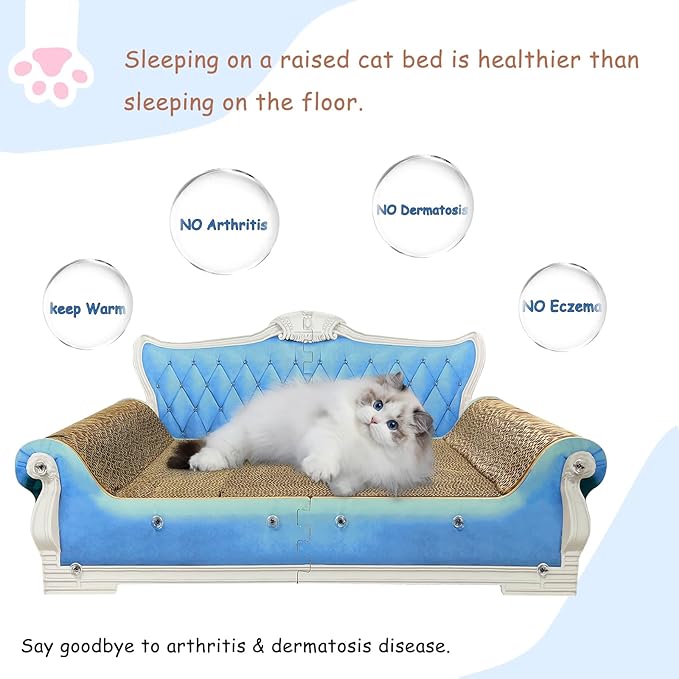 Luxury Cardboard Cat Scratcher Sofa Bed, Couch Shaped Scratching Board, Scratch Lounge with Catnip, Cat Scratcher for Indoor Cats Large Blue