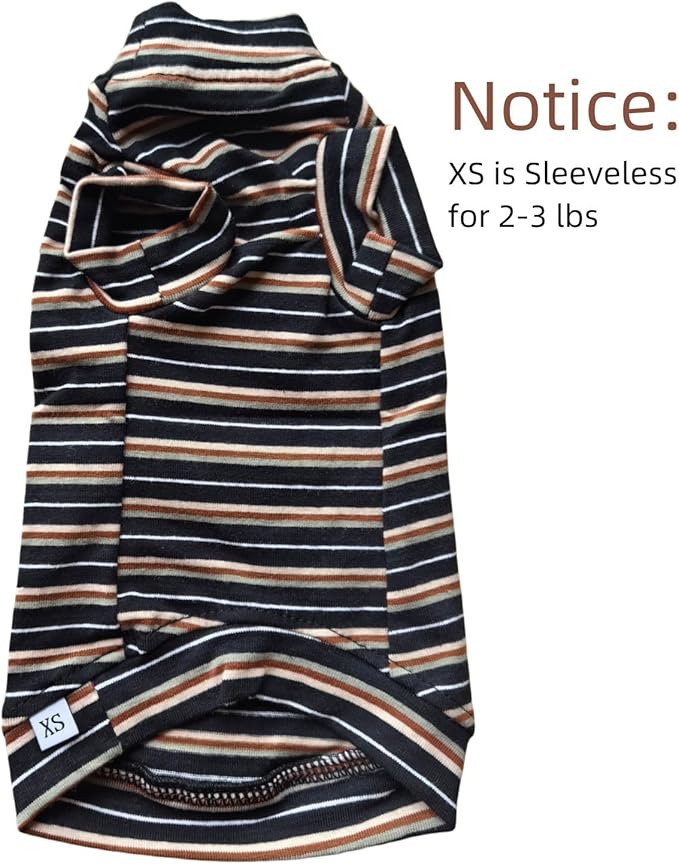 Vintage Stripes Sphynx Hairless Cats Shirt Cotton Cat Turtleneck Pet Clothes Kitten T-Shirts with Sleeves for Sphynx Cats (Vintage Black, X-Small)