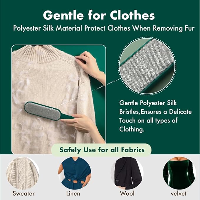 - 【𝐆𝐞𝐧𝐭𝐥𝐞 𝐨𝐧 𝐅𝐚𝐛𝐫𝐢𝐜𝐬】Polyester bristles and electrostatic adsorption ensure a delicate touch for all types of garments.