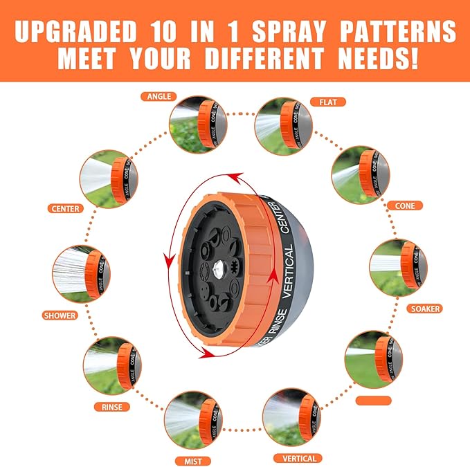 - 10 Spray Pattern Hose Nozzle Sprayer Meet All Your Needs. Our soap sprayer hose attachment has 10 types of spouts, simple spin spray selector different settings, can spout water in 10 patterns, perfect shower attachment to washing your dogs, washing car, watering flowers, cleaning house, our pet shower attachment can meet your different needs.