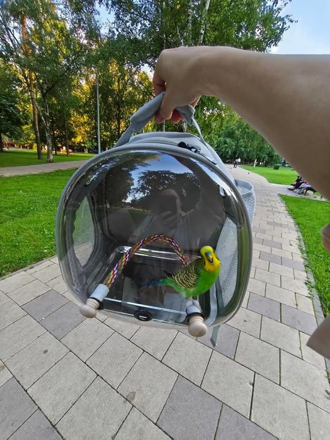 - Small Bird Travel Carrier Backpack: Space capsule astronaut liked clear bubble window in front, allows your feathered friends parakeets to check surroundings while traveling to vet or outdoor adventure. Small Bird Carrier Cage for small to medium sized of parrot, budgies, conure, cockatiel and parakeets.