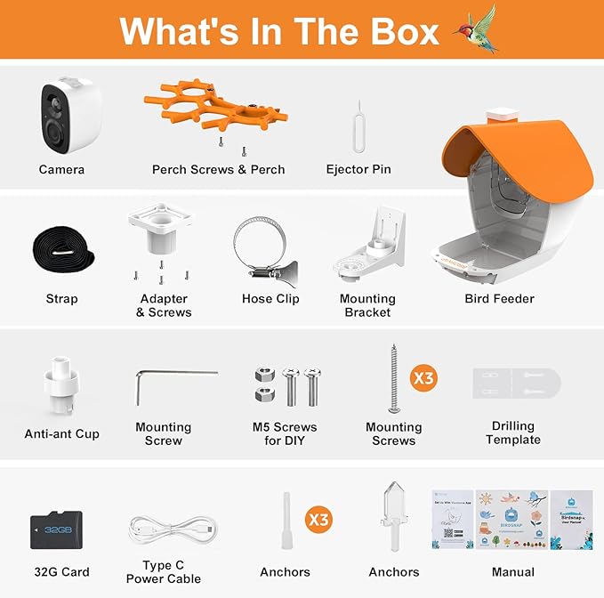 - 【Ideal Gift for Bird Lovers】birdsnap video bird feeder camera makes the perfect gift for birdwatching enthusiasts of all ages. It provides a 32GB Storage Card and cloud storage, allowing you to share beautiful bird moments with family and friends. Strengthen family bonds and create lasting memories with the joy of birdwatching together.