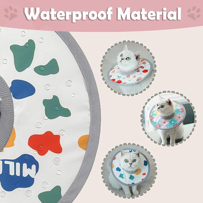 - 【PROTECTION FOR YOUR PETS】The cute pet recovery collar can prevent your pets from biting and licking the wound after surgical operation or injury. If your cat's wound is on the foot (like front and back paws), it is recommended to buy a larger size when cat's neck circumference allows.