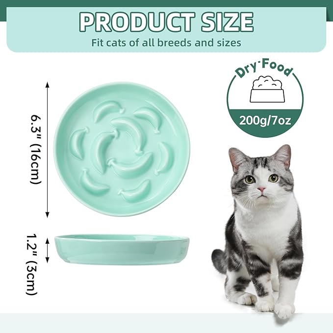 - Extra Wide Design & Non-Slip - The large 6.3-inch diameter allows your cat to easily access food without bothering their whiskers. The packaging comes with some anti-slip stickers that can be used on the bottom of the slow eating cat bowl to prevent slipping and tipping.