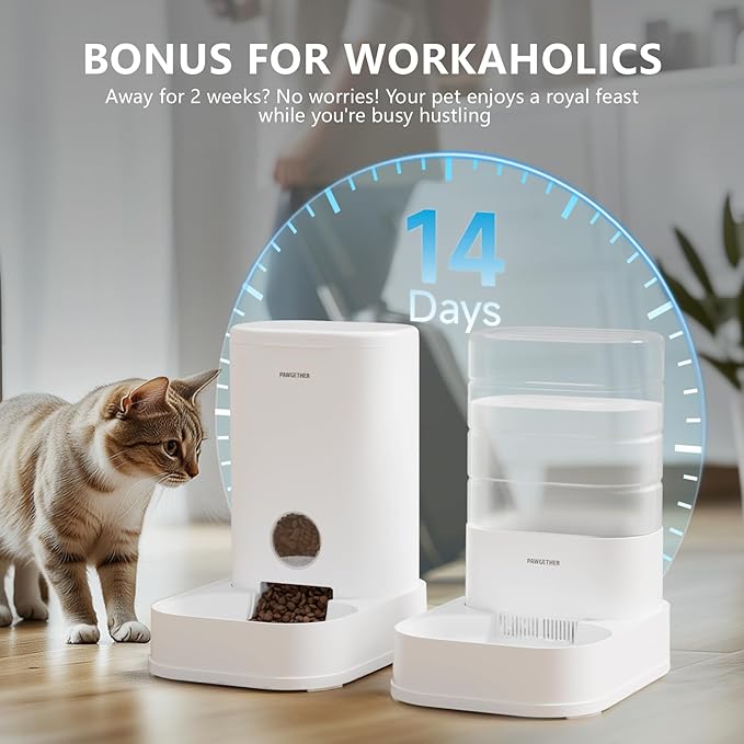 - ๐๐๐ซ๐ ๐ ๐๐๐ฉ๐๐๐ข๐ญ๐ฒ - Both the cat water and food dispenser features large 3.5 L/1 Gallon capacity, which can reduce the frequency of refills. It is perfect for pet owners with busy schedules