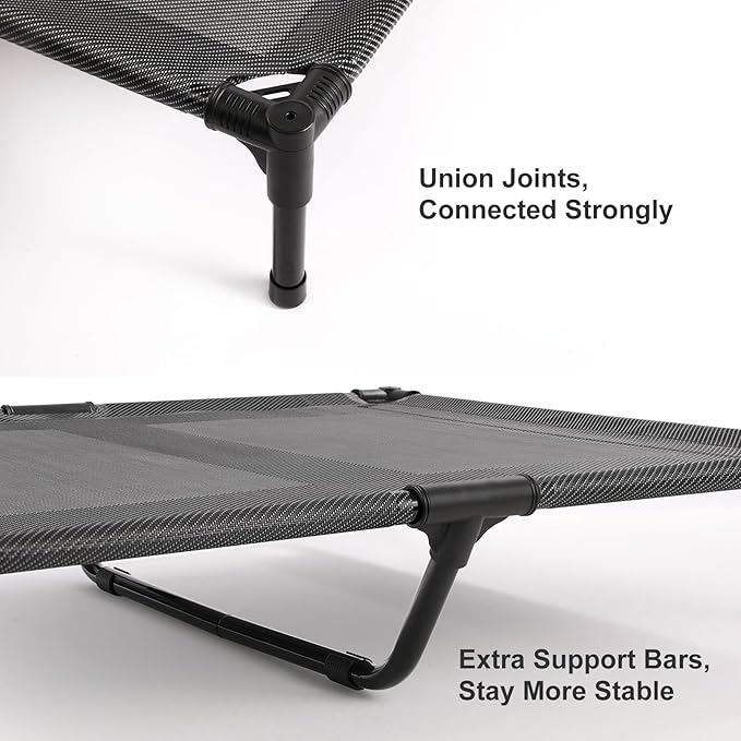 - [Strong Support] The elevated dog bed features additional support bars and sturdy steel pipes, providing exceptional strength and a weight capacity of up to 120 pounds. Your large dog will be well-supported and comfortable.The height is just right for dogs of all ages, from puppies to seniors.