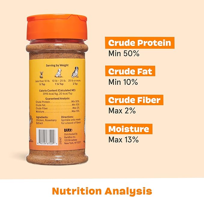 Barkbox Chicken Dog Treat Topper High Protein Limited Ingredient Meal Mixer, Rosemary Extract for Large & Small Breeds, Elevate Dog Food Dining, Shake & Pour for Dog Bowls (Pack of 3)