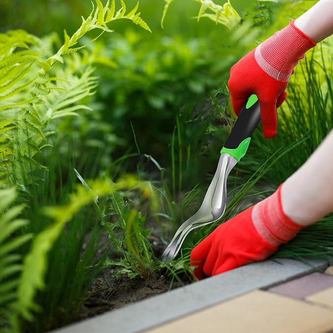Kynup Garden Tools, Pitchforks, Garden Tools, Weeder Aluminum with Soft Rubberized Non-Slip Handle, Durable Garden Hand Tools Garden Gifts for Men Women