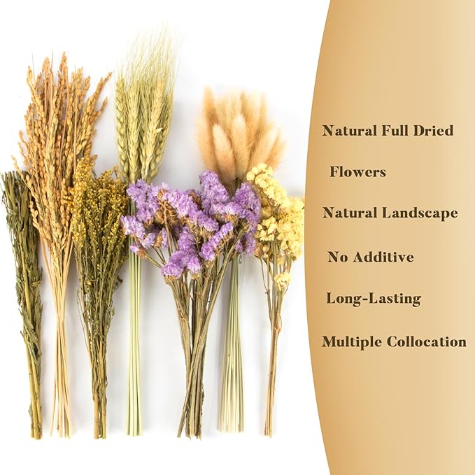 - Perfect Decoration: Dried flowers are bright and durable, perfect for home and outdoor decor and making handicrafts. You can use dried flowers for wedding decoration; camping; theme parties; Christmas; Easter; Thanksgiving.It also suitable for DIY wreaths; handmade 3D paintings; holiday cards; house decorations