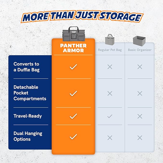 Panther Armor Dog Travel Bag- Hanging Dog Organizer & Pet Storage Tote Bag for Supplies,mWaterproof Door Storage & Closet Organizer, Food & Treat Container for Travel Accessories