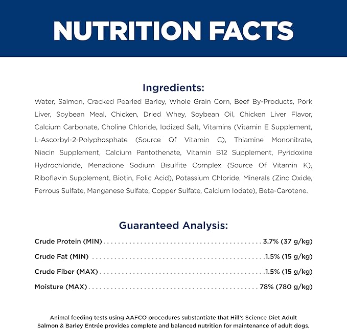 Hill's Science Diet Adult 1-6, Adult 1-6 Premium Nutrition, Wet Dog Food, Salmon & Barley Loaf, 13 oz Can, Case of 12