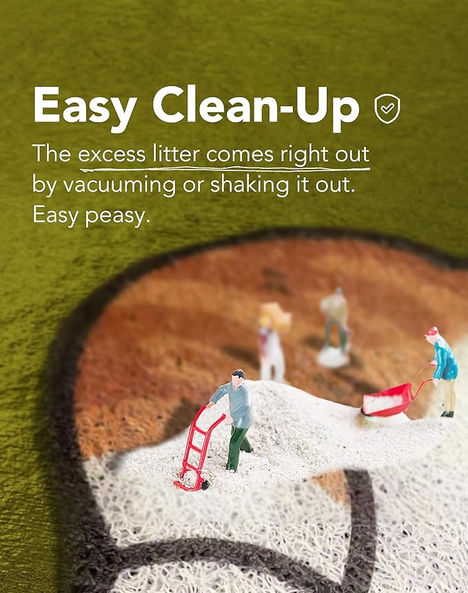 - ✨ Easy Clean-Up: You can clean Lukamoo’s litter mat by vacuuming or shaking it. The excess litter comes right out. Easy peasy.