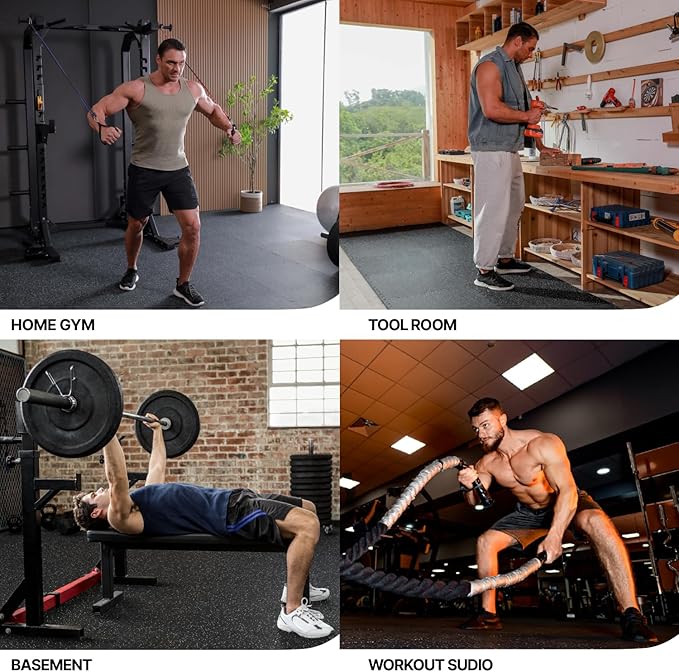 - [Effortless to Maintain]: Crafted from High-Density EVA Foam, these tiles minimize noise and vibration, allowing quiet and comfortable workouts. The waterproof feature makes cleaning a breeze with a damp cloth. Ideal for yoga, benches, workouts, treadmills, crossfit, kettlebells, cardio, and more.