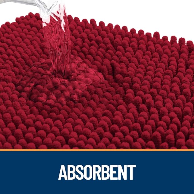 OLANLY Dog Door Mat for Muddy Paws 47x32, Absorbs Moisture and Dirt, Absorbent Non-Slip Washable Doormat, Quick Dry Chenille Mud Mat for Dogs, Entry Indoor Entryway Carpet for Inside Floor, Red