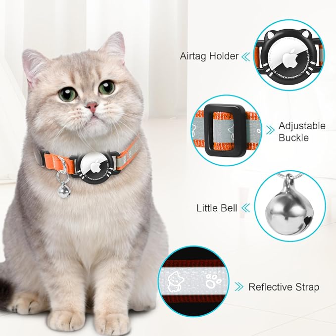 - Airtag Cat Collar: The Airtag Cat Collar is designed for Airtag and comes with an AirTag holder that is perfectly compatible with it. Inserting the Apple AirTag into the collar holder creates a lightweight GPS tracker that can locate your pet at any time (note: AirTag not included).