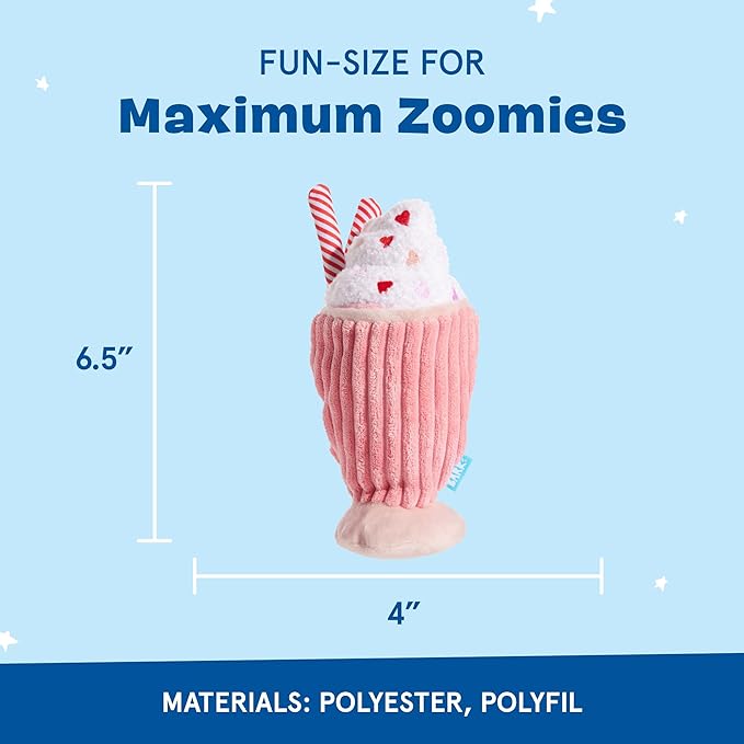 - Hours of Fun: This milkshake dog toy is densely packed with interactive elements: the soft fuzz provides pleasant interaction, the crazy crinkle provides fun texture when chewing, the hidden treat pocket, and the internal disc squeaker inside is ideal for, well, chewing and squeaking