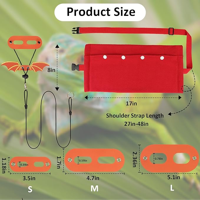- [Bearded Dragon Leash and Carriers Set] Elevate your bearded dragon's style and comfort during outings with this complete set, which includes a bearded dragon harness and three adjustable leash sizes.
