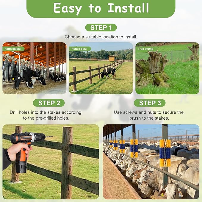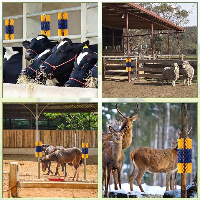 - 🐄Top quality: The livestock scratch brush is durable and can withstand over 1000 pounds of horses leaning on it. Brushes are hard enough to relieve itching, but they are not sharp enough to harm animals or damage their skin or tails.