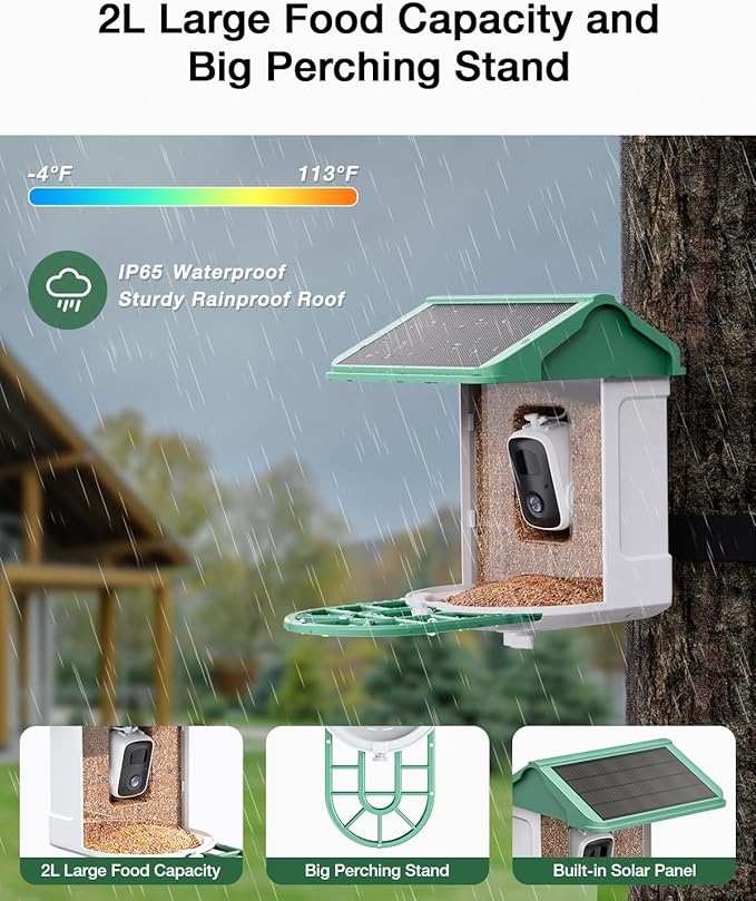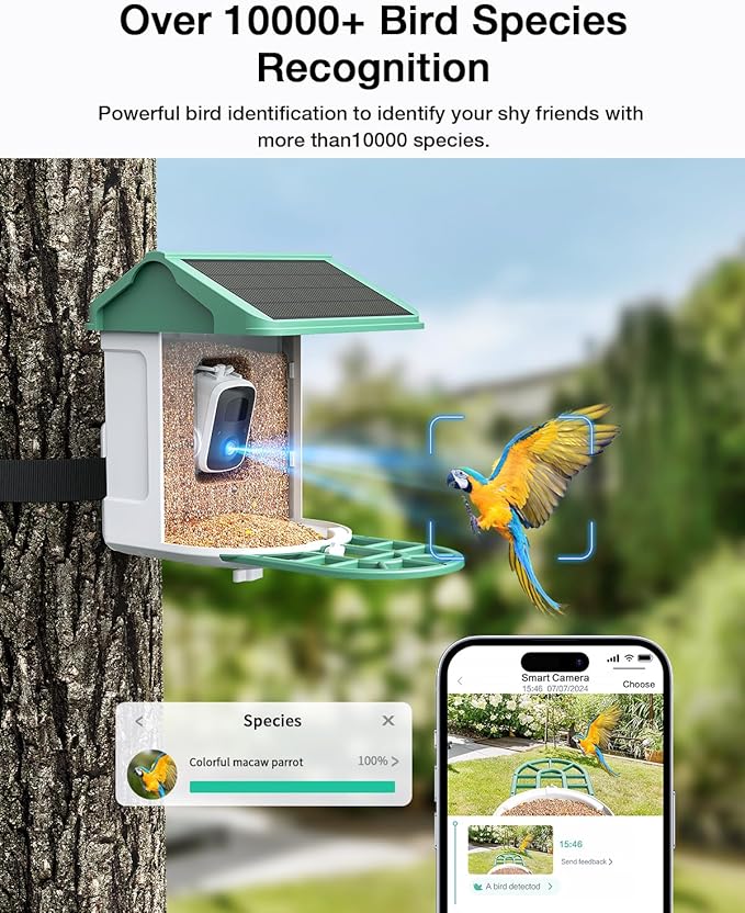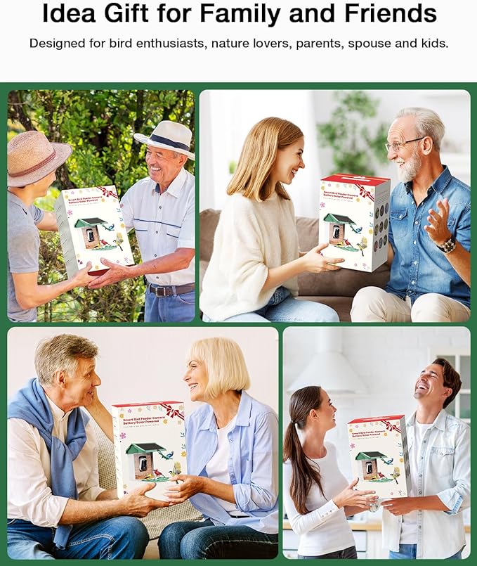 - Special Presents for Bird Lovers: This smart AI bird feeder with camera provides 2K live videos of various visiting birds day and night. You can store the bird video on the cloud (3 days of loop records) or local storage (memory card, up to 128G, not included) and share the birds' video on social media. It is a special present for kids, friends, spouses, and parents, which will strengthen communication between families.