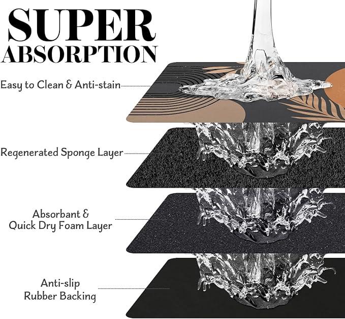- Super Absorption: The dog mat for water bowl can absorb spilled water without leaving traces and dry quick, avoid wetting pet paws even for messy drinkers. And it does not attract pet hair like traditional silicone dog bowl mat.