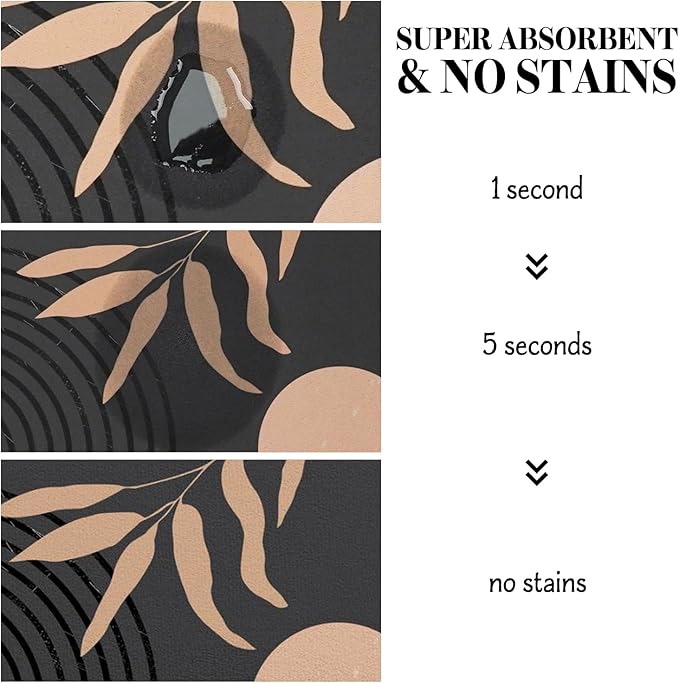 - Super Absorption: The dog mat for water bowl can absorb spilled water without leaving traces and dry quick, avoid wetting pet paws even for messy drinkers. And it does not attract pet hair like traditional silicone dog bowl mat.