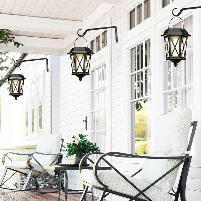 10 inch Plant Hanger, Sturdy Hanging Plant Bracket Outdoor, Hanging Plant Wall Hook Heavy Duty, for Hanging Bird Feeders, Planters, Lanterns, Wind Chimes, Indoor/Outdoor Use, Black, Set of 2