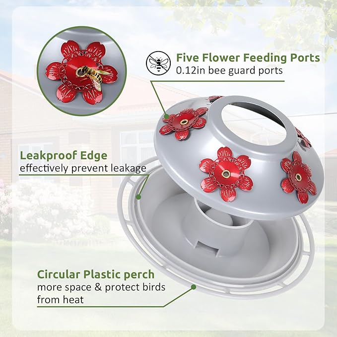 - Leak-Proof Design: The base of this hummingbird feeder are consist of premium metal cap and plastic base with leak-proof edge; Therefore, you don't need to worry about messy spills or waste of nectar
