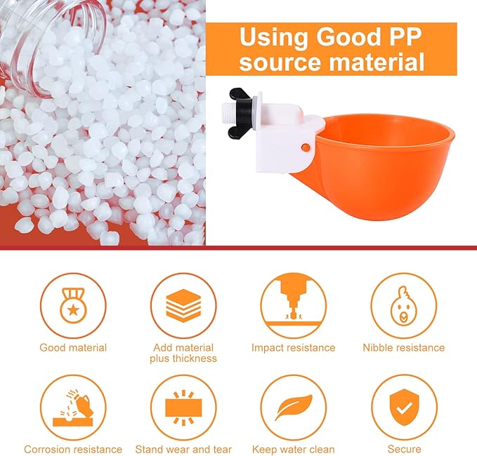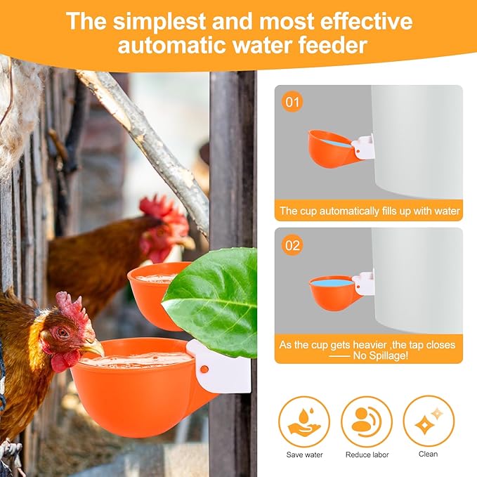 - Package Includes Chicken Waterers and Support: Your purchase includes 8 chicken waterers (specifically chicken waterer cups) and individually packaged drill bits. We stand behind our poultry waterer products—contact us with any issues, and we’ll respond within 24 hours to ensure your satisfaction with this chicken water system