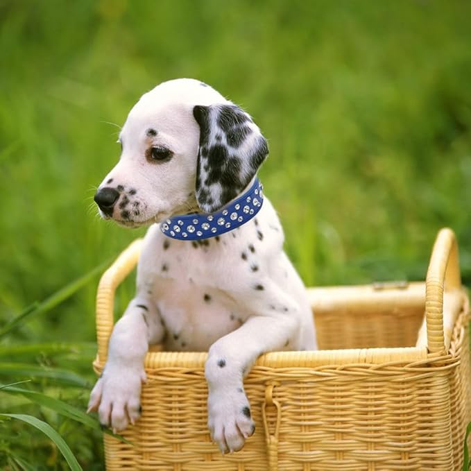 Blue Dog Collar XXS, Bling Diamond Cat Collar Rhinestone Faux Leather Fancy Crystal Glitter Pretty Jewel Female Puppy Collars for XXS XS Small Medium Large Pet Girl Dogs, XXSmall